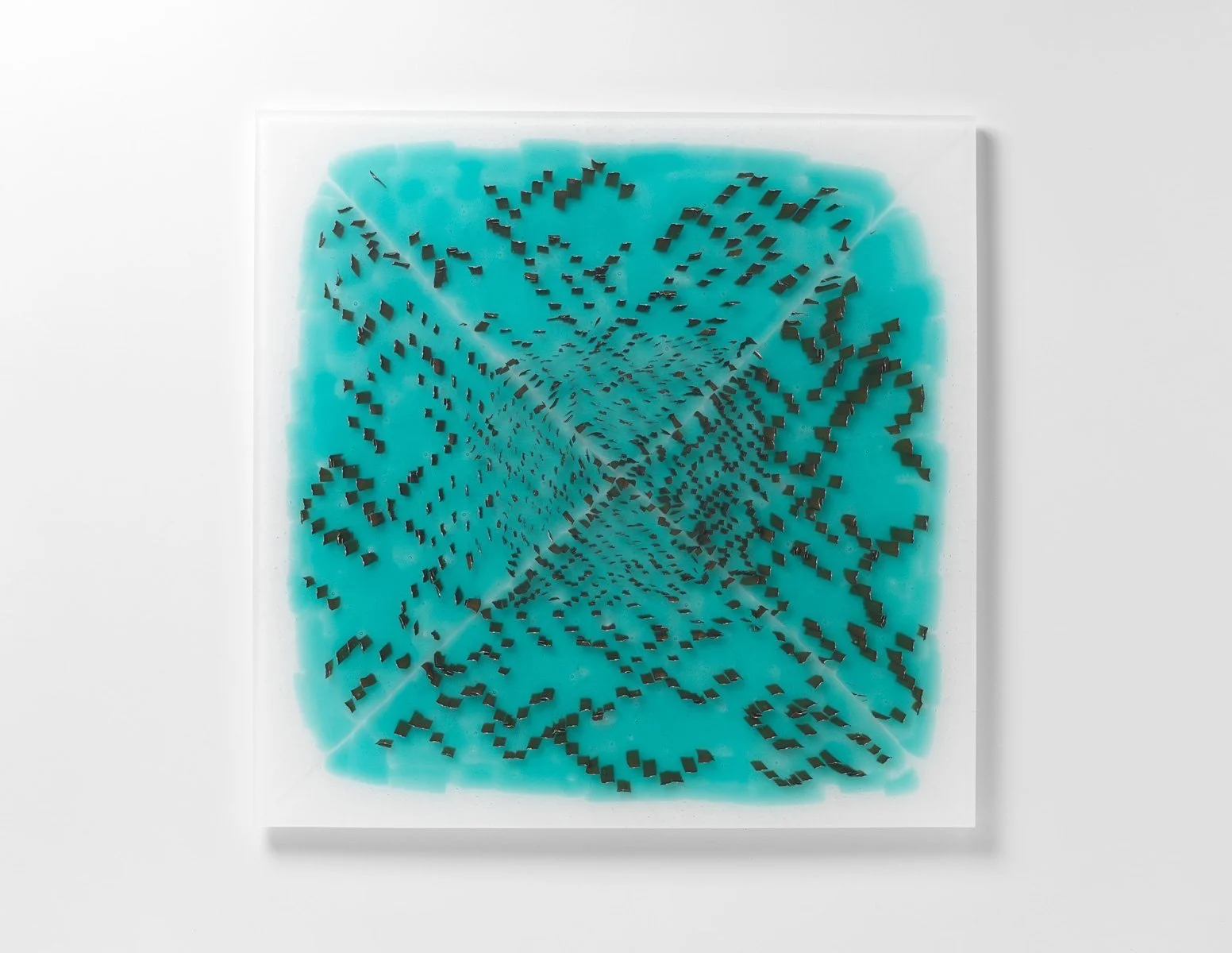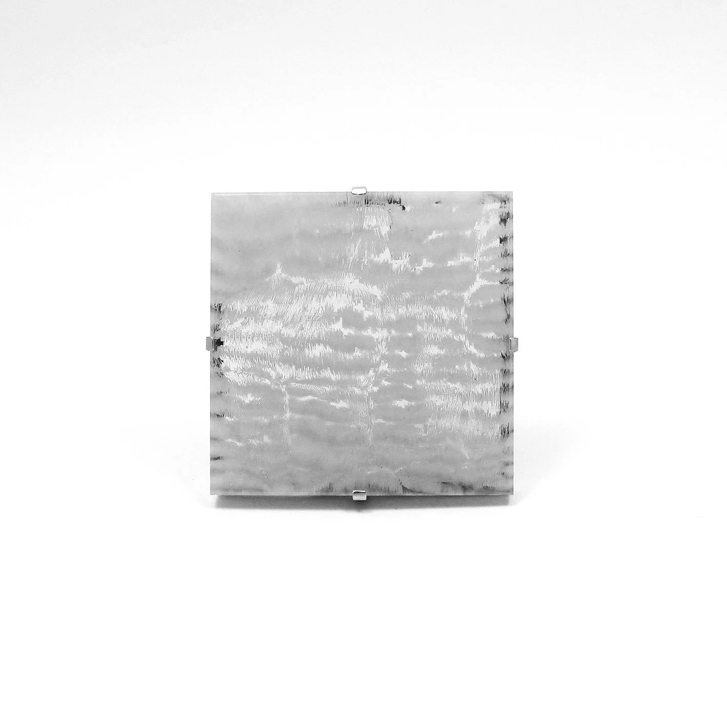 50 x 50 x 8mm. Fused glass with 925 findings.